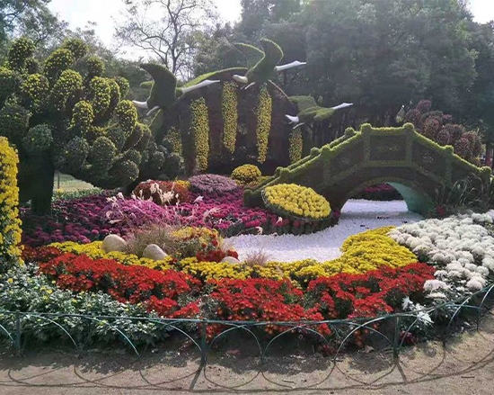 五色草造型优势突出,全程采用鲜活植物打造,视觉鲜活,相比传统雕塑更具生机,养护得当的情况下,北方可观赏半年以上,南方能实现全年观景。它适配场景广泛,市政广场、公园景区、商业街区、大型庆典活动都能见到它的身影,既能烘托节日氛围,又能彰显城市特色,是兼顾美观与生态的经典园艺艺术。