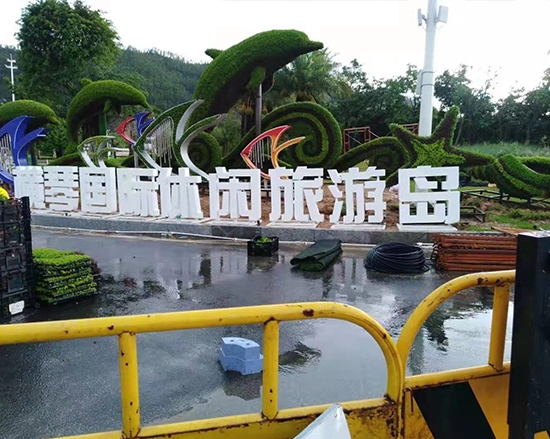 这类造型分为平面模纹花坛与立体绿雕两大类,平面款式多用于拼接几何图案、文字标识,线条规整、色彩匀称;立体款式则可塑造动物、卡通形象、建筑、主题雕塑等各类形态,立体感足,形态栩栩如生。制作时,先根据设计方案搭建钢筋、合金轻量化骨架,稳固抗风,再在外层铺设铁丝网,填充轻质营养土并固定,随后按照色彩分区,高密度扦插草苗,先勾勒轮廓再填充细节,保障图案清晰、色彩准。