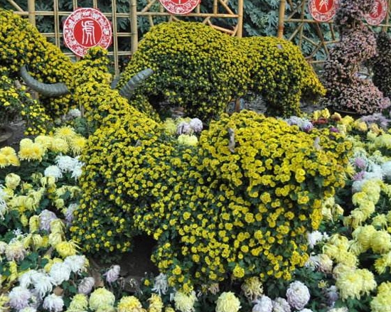 人工造型菊是菊花园艺的精髓,代表性的当属大立菊。它一株可开花数百乃至数千朵,经精心绑扎、摘心调控,花朵大小均匀、排列整齐,呈规整的半球形或扁平状,繁花似锦、气势恢宏,常作为菊展核心景观,尽显大气端庄。悬崖菊则效仿山野野菊悬垂姿态,选用枝条细软的中小菊品种,借助支架诱引,花枝自上而下自然垂落,长短错落、飘逸灵动,远观如瀑布倾泻,又似悬崖缀花,意境清幽。