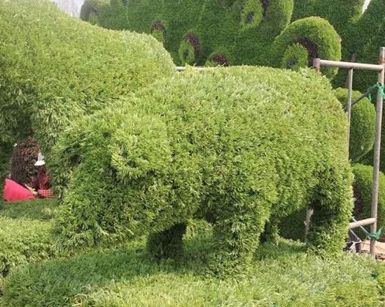 制作时先搭建防锈稳固钢架,铺设基质后分区栽植草苗,后期定期修剪维持形态。这类绿雕净化空气,日常养护简便,观赏期长,既避免了传统造型易破损的短板,又能传递文化意境,让自然绿意与艺术造型融合,扮靓各类景观空间。
